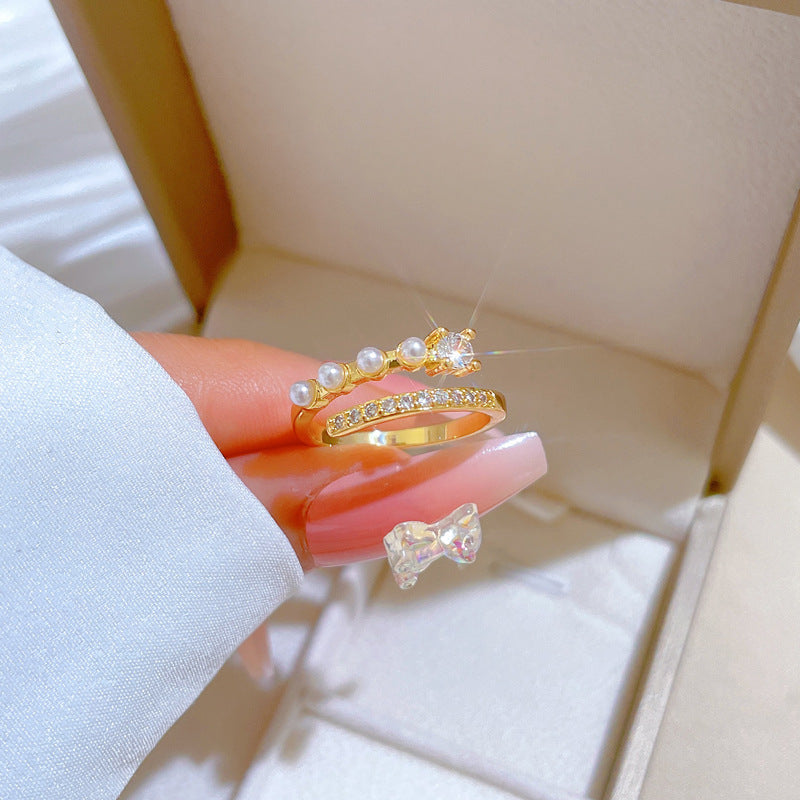 Detalhes: Anel ajustável com pérolas e zircônias.