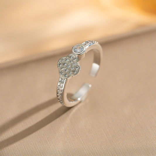 Detalhes: Anel ajustável com design de trevo e zircônias cravejadas.