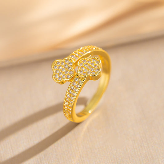 Detalhes: Anel ajustável com design de trevo e zircônias cravejadas.
