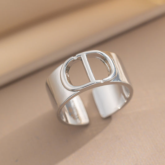 Detalhes: Anel ajustável com design de letra D e zircônias cravejadas.
