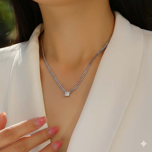Material Premium: Confeccionado em Prata de Lei S925 legítima, o colar recebe um luxuoso banho de Ouro Branco 18K, proporcionando um acabamento platinado, resistente a manchas e hipoalergênico.
