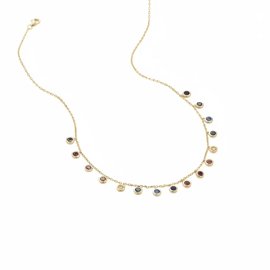 Ilumine seu visual com um toque de alegria e cor com o nosso deslumbrante Colar Arco-íris de Zircônias. Esta joia é a representação perfeita da energia e da beleza, com um design delicado e moderno que realça o colo de forma vibrante.