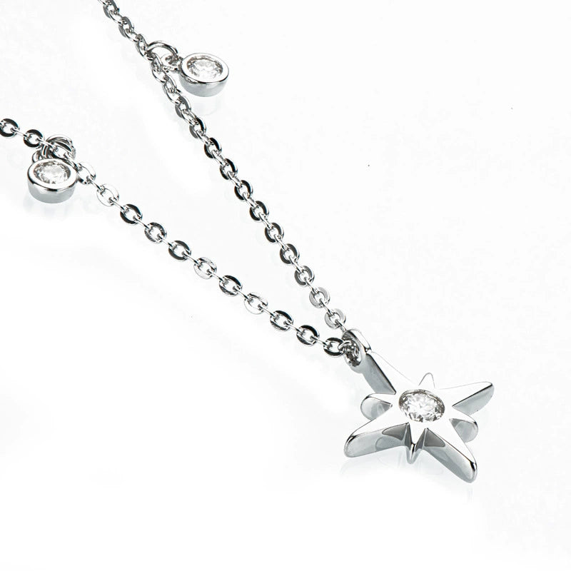 Expresse sua luz e brilho com o nosso deslumbrante Colar Estrela Polar. Esta joia é a representação perfeita de um ponto de luz que te guia, com um design delicado e sofisticado que une a elegância das pedras com a inspiração do céu.