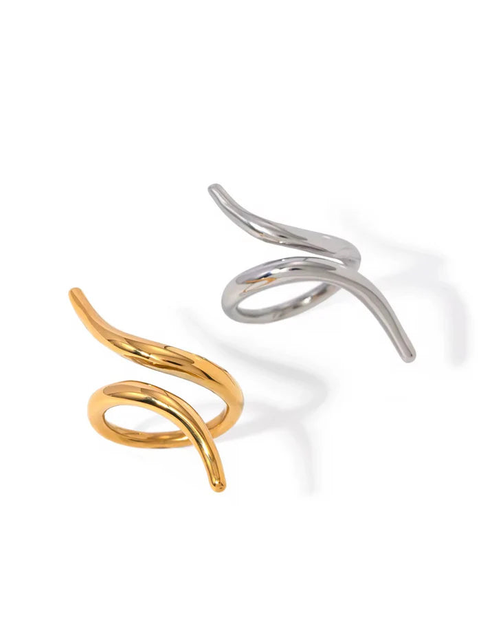 Confeccionado em Aço Inoxidável com opções de acabamento em luxuoso banho de Ouro 18K ou elegante prata polida, o anel garante durabilidade excepcional, resistência à água e um brilho intenso. O destaque fica por conta do seu design aberto e ajustável em formato de espiral, que imita o movimento gracioso de uma cobra. As linhas são fluidas e polidas, transmitindo um toque de arte e sofisticação ao seu visual.