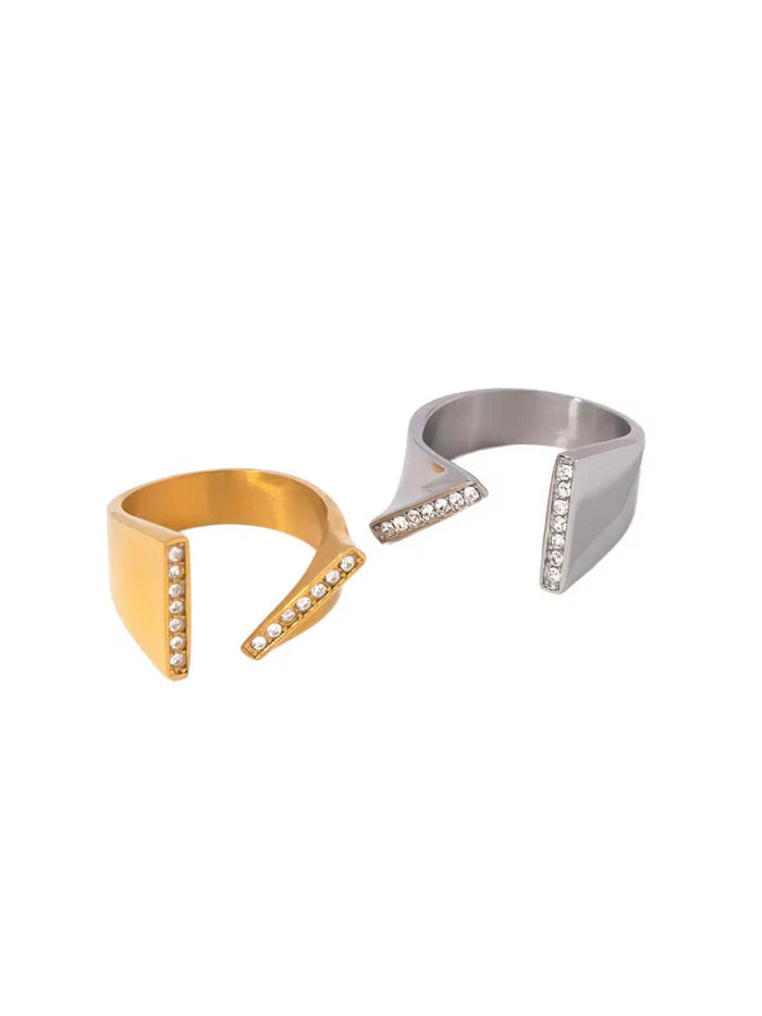 Confeccionado em Aço Inoxidável com opções de acabamento em luxuoso banho de Ouro 18K ou elegante prata polida, o anel garante durabilidade excepcional, resistência à água e um brilho intenso. O destaque fica por conta do seu design largo, aberto e geométrico, que possui uma fenda central. As bordas da fenda são ricamente cravejadas com zircônias cintilantes, criando um contraste incrível entre a superfície lisa do metal e a intensa luz dos cristais.