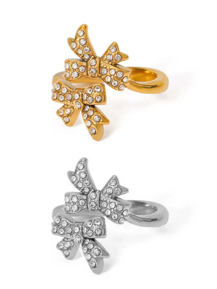 Confeccionado em Aço Inoxidável com opções de acabamento em luxuoso banho de Ouro 18K ou elegante prata polida, o anel garante durabilidade excepcional, resistência à água e um brilho intenso. O destaque fica por conta do design grande e volumoso em formato de laço, totalmente coberto por um pavê de zircônias cintilantes. O laço, um símbolo clássico de presente e celebração, adiciona um charme irresistível e tridimensional.